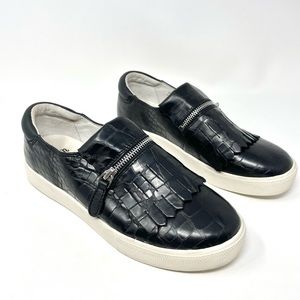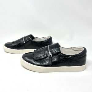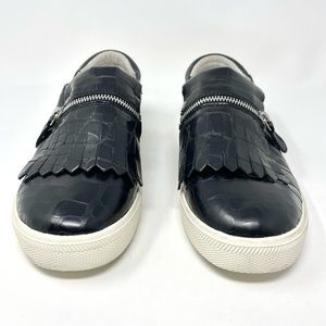Ash King Kiltie Fringe Black Croc Embossed Leather Sneakers Size 40