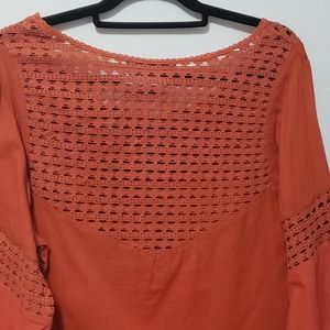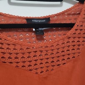 Ashley Stewart cotton blouse with crochet details on the front, back and sleeves. 100% cotton. In EUC.