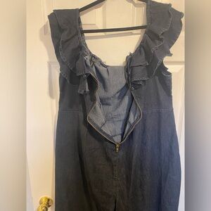 Ashley Stewart Plus Ruffle Off-Shoulder Sleeve Denim Jumpsuit Size 26