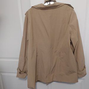 plus size 3x - fits a 24/26. listed as a 26. depends on your bust size. double breasted button closure. belted.