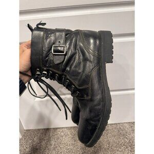 Ashton Grey Black Leather Lace Up Buckle Boots Size 10