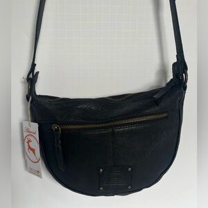 Ashwood Genuine Leather Studded Black Crossbody Bag Boho Saddle Hobo NWT