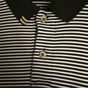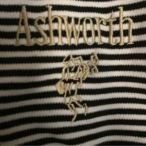 Ashworth Black And White Striped Polo Shirt Golf Logo Size XL Preppy Classic
