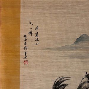 Asian Bamboo Scroll Galloping Horse Hand Painted 31.x18.5” Mid-Century Signed