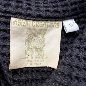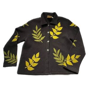 Asian Creations Jacket Floral Appliqued Leaves Vintage Black Green 100% Cotton S