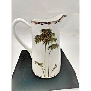 Asian Hand Painted Ceramic Pitcher - Bamboo Trees 6.5" Tall - Marked