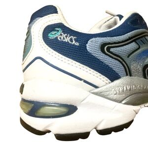 These Asics athletic shoes feature a striking blue and white color scheme, perfect for running and other sports activities. The mesh upper ensures breathability, while the white midsole provides a comfortable cushioning experience. Designed for performance, these shoes combine style and functionality seamlessly.