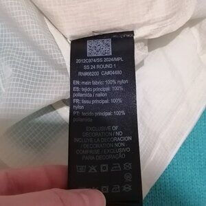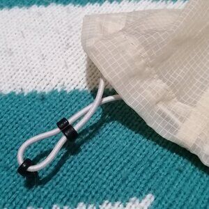 This listing is for an Asics packable gilet/vest in a neutral cream colour that is officially called Birch. It has black accents. It is never worn, BNWT. This gilet features a drawstring around the bottom; large pockets including one with a special inner pocket in which a phone can be secured; reflective detail on back; ripstop nylon construction, making it lightweight but also durable and weather resistant; a pocket on the back into which the whole gilet can be packed for easy carrying in case conditions change while you're out. This is a current model available on the Asics website, though it is now sold out in this size/colour. Original price from Asics was $130.