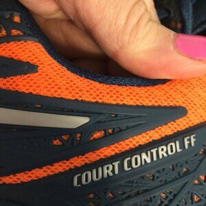 Asics court shoes worn inside for pickleball men's size 75. blue and orange