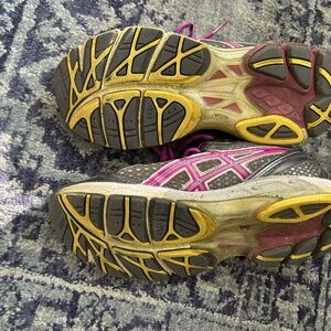 Asics gel kayano in excellent condition. Size 8. Silver/ grey with purple/ pink accents. Super comfortable and supportive for all sports including running.