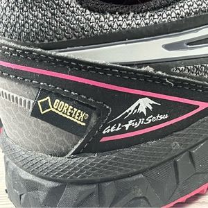Asics Gel-Fuji Setsu Black Gray Pink Goretex Trail Running Shoe Spikes Womens 7