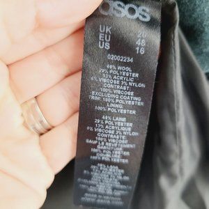 Asos Curve Faux Leather Zip Moto Jacket Wool Blend Coat Black Teal Plus Size 16