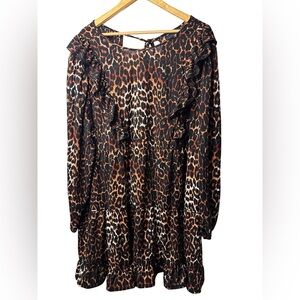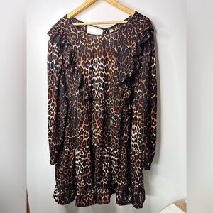 Asos Curve Women Frill Front Leopard Print Mini Dress, Black/Brown Combo size 24