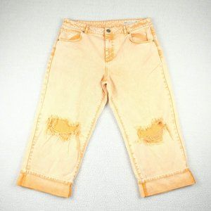 Asos Jeans Womens 34 28 Orange Denim Capris Distressed Cuffed Baggy Retro 90s