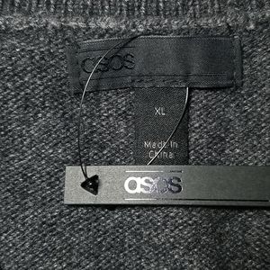 Asos Men's Sweater Size XL Lambswool V-neck Charcol Grey