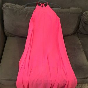 Asos Neon Pink Maxi Dress Size 6 SOLD OUT As Seen on blogger Rach Parcell from Pink Peonies. This dress has a short underlay and sheer long length, open back good condition. This dress was professionally hemmed to hit the floor with flats at my height approx 5'2. The dress from top of shoulder to bottom measures approx 53-55 inches. Perfect for summer weddings, parties and vacation 🌺