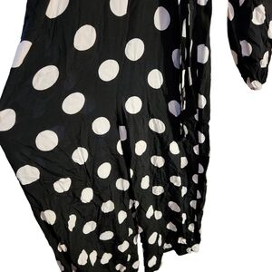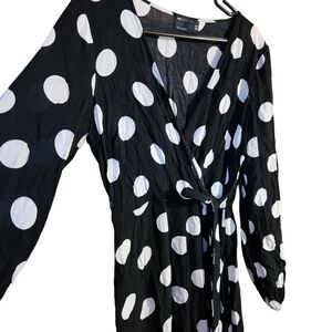 Asos design, black and white poka dot, long sleeve, wide leg jumpsuit romper, pants. Cross-over v-neck, drawstring tye at the waist, stretchy elastic waistband and cuffs. Super comfortable, stretchy, cute,lightweight and in great condition size 6