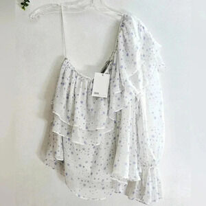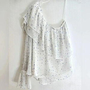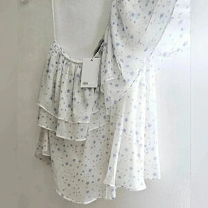 Asos frilled off shoulder puffy sleeve white & Blue Stars Beachy Boho blouse Sz L