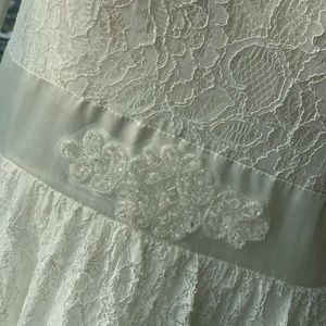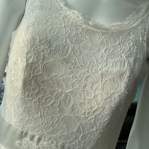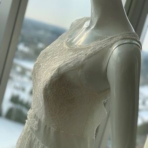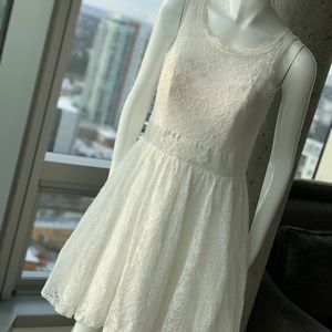 Aspeed Lace White Dress with crinoline. Size Medium. Polyester (100%) Hand beaded. Worn only once for a wedding. See photos for measurements.