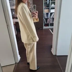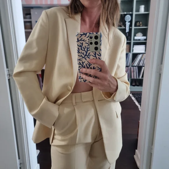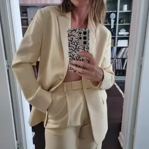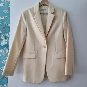 Elegant cream blazer. Single-button closure. Tailored fit.