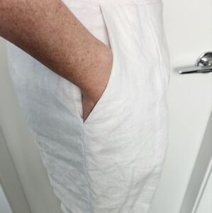100% Linen over 100% Cotton Lining, Hidden Side Zipper, Dart Seams, Excellent Condition, AU Size 8 (CA 6), Fixed Waist-14 1/2, Length-17