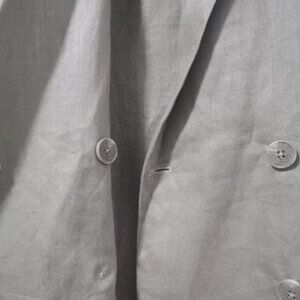 Taupe linen double-breasted blazer by Australian brand Assembly Label. Oversized style. In-seam front pockets.