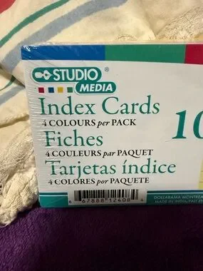 ruled index cards in assorted colors including green, pink, yellow, and blue. Bright, lined cards designed for easy organization, note-taking, and study. Pack of 100 sheets ideal for home, office, or school use.