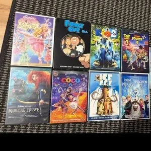 Collection of popular DVD movies including animated and family favorites. Perfect for movie nights.