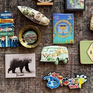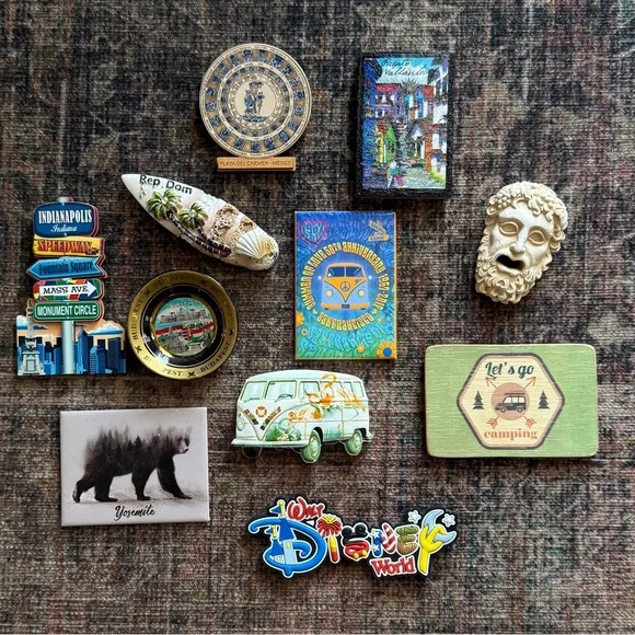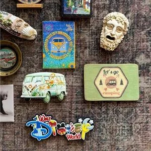 Enhance your space with this vibrant set of decorative travel magnets. Featuring a variety of designs in multicolor tones, these magnets add a playful touch to any magnetic surface.
