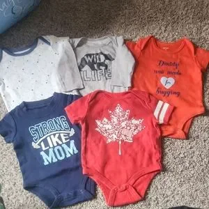 This assortment of kids one pieces feature vibrant colors and playful designs. Perfect for everyday wear, these pieces are comfortable and stylish for your little one. Ranging from 0-6 months, there's fun to be had in these selected pieces.