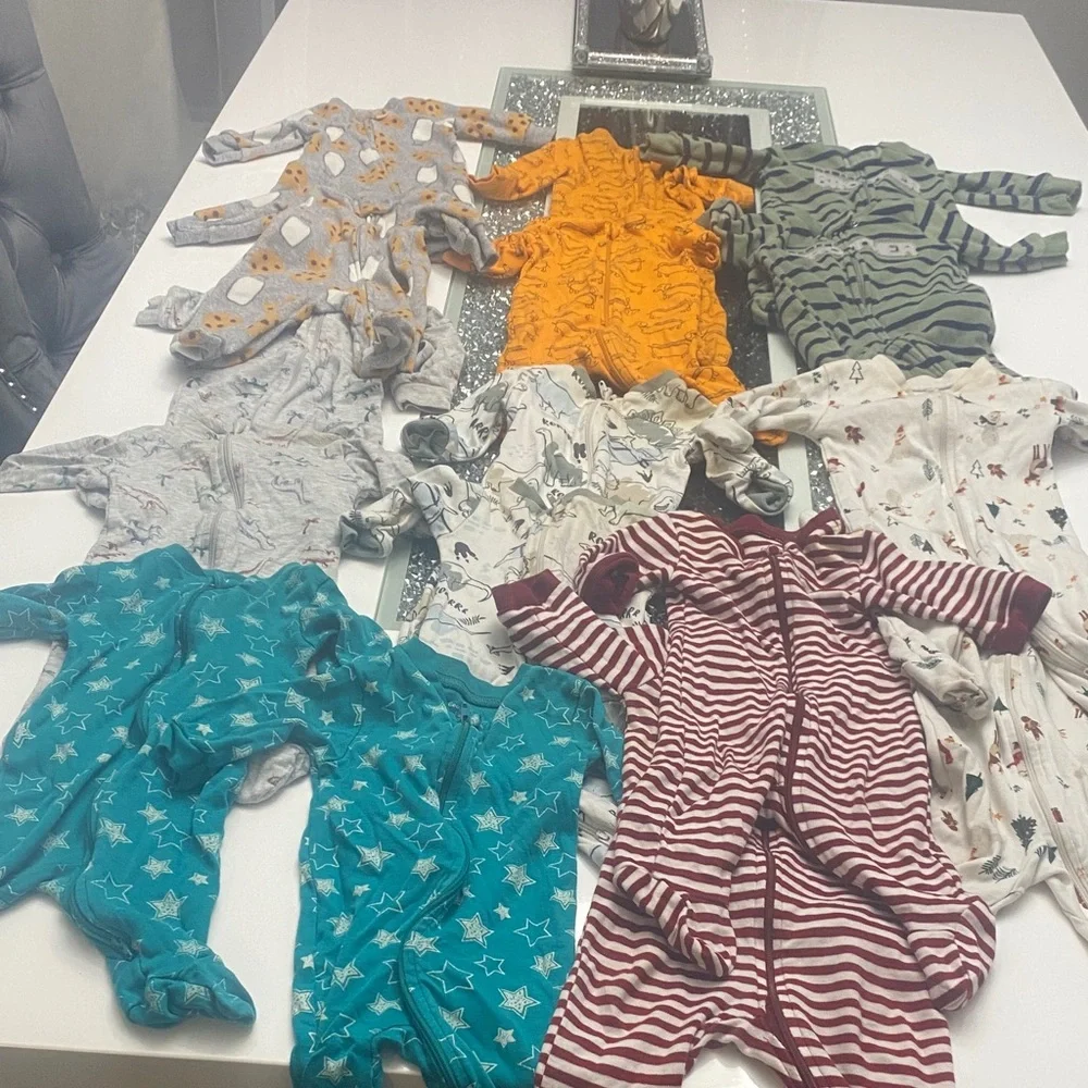 16 pieces of twin set footies in vibrant colors and playful patterns.