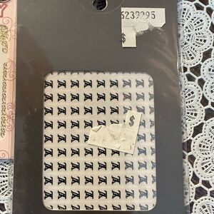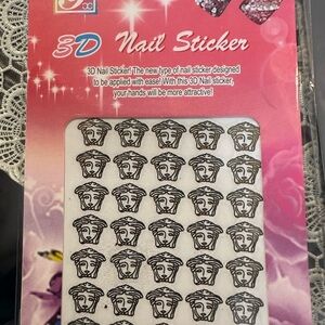 Chic nail stickers and accessories.Features stylish black and gold logos. Ideal for fashionable nail art.