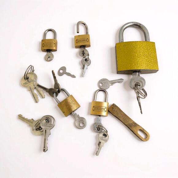 Assorted padlocks and keys suitable for projects, home use, or luggage.