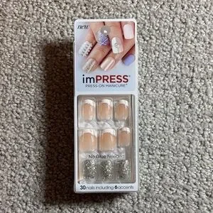 Chic press-on nails by imPRESS. Bold pink and elegant black design. Quick and easy to apply.