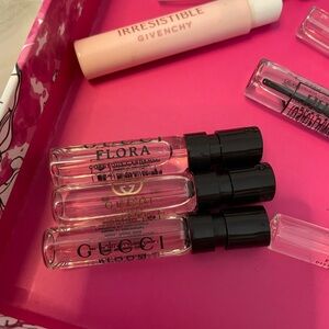 Discover a variety of scents with this assorted women's fragrance sample set. Perfect for exploring new fragrances. Great for travel or keeping in your purse. Includes 27 assorted like Gucci, all saints,Prada, Jo Malone, Burberry and more. Also includes Tory Burch roller ball. All new not used.