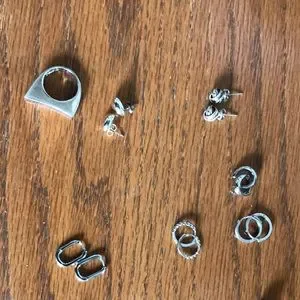 Silver, silver plated and rhodium plated jewelry. Clearing my jewelry box of pieces I don’t reach for anymore. Selling the entire listing for $45 but am open to offers!