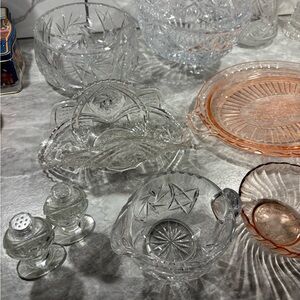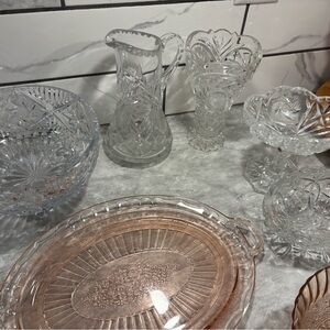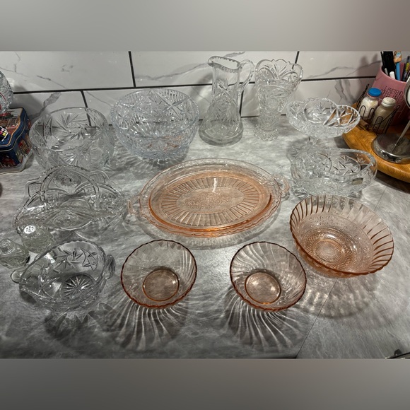 Enhance your dining experience with this elegant crystal and pink glass set. Perfect for any occasion, this set adds a touch of sophistication to your table.