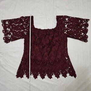 Astars Top Womens XS Burgundy Lace Lined Off Shoulder Floral Stretch Coquette