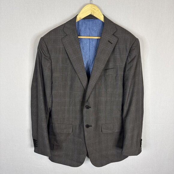 Astor & Black Ermenegildo Zegna Cool Effect Wool Blazer Gray Blue Plaid Men 42R
