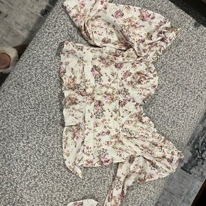 Astr Floral Print Ruffle Blouse