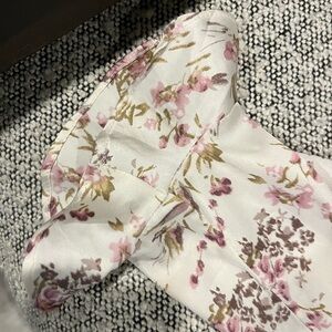 Chic floral blouse with ruffle accents. Features a fitted silhouette and long sleeves. Ideal for stylish outings.
