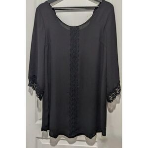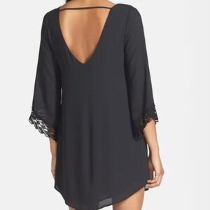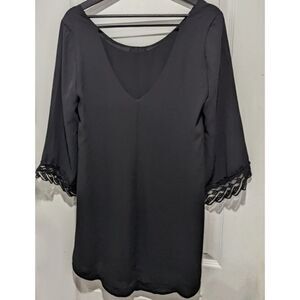 This woven, scoop-back shift channels retro-chic style with lacy, scalloped trim and a swingy, silhouette.