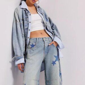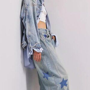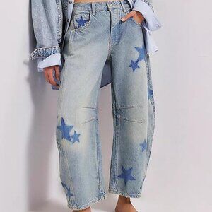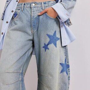 Astronomy Domain Star Printed Boyfriend Retro Horseshoe Jeans Light Blue