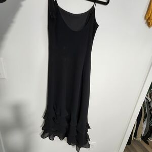Spaghetti strap black asymmetrical ruffle dress. Classy and fun! Smallest part of the waist is approx 14.5" across, hips approx 21" across. Tag says size 7.