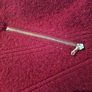 Stunning red coat from Guess! It has an asymmetric fit that caters to different ways to wear it (zipped all the way up with high collar or lower collar). It has gold hardware with small sawarski details.