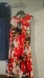 This striking blouse showcases a bold red and black floral pattern with an asymmetrical design, creating a modern and artistic look. The sleeveless tank top style offers a comfortable fit, while the smooth, form-fitting fabric enhances its contemporary appeal.