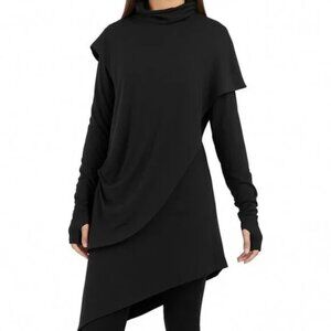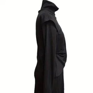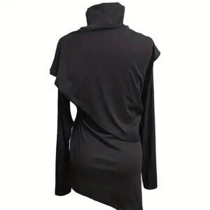 Asymmetrical Solid Black Mock Neck/Turtleneck Dress