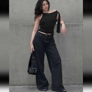 New Black Asymmetrical Off-shoulder Top