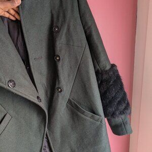 Beloved and ready for its next home! Warm down to -10/-15°C (layer to push it further). Features a fitted asymmetrical collar, luxe velvet front, cozy faux fur sleeves, and extra-deep side slit pockets. A statement winter coat that blends style with function.