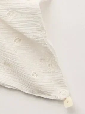 Designed to add a drapey touch to your scrunchie collection, this super cool piece is featured in a square silhouette and textured, eyelet-lace-adorned fabrication with dangly square detailing at corners for the perfect timeless finish. Color is Optic White.